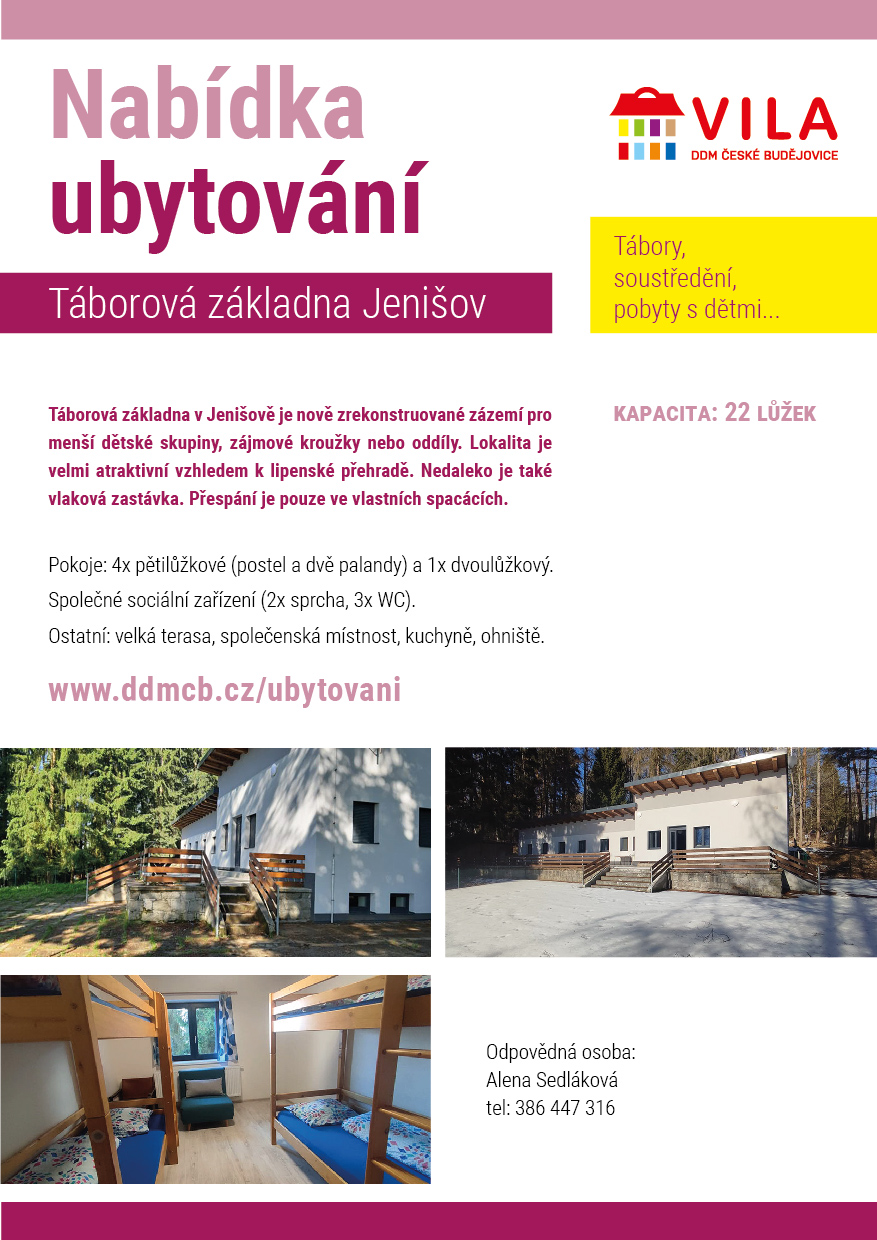 Adresa: Táborová základna Jenišov 153, 382 26 Horní Planá